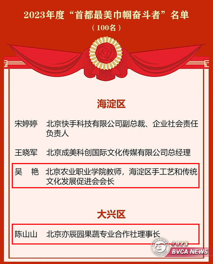 近日,由北京市妇联开展的2023年度“首都最美巾帼奋斗者”选树活动榜单揭晓,全市共有100名优秀女性入选“首都最美巾帼奋斗者”,学院经济管理系教师吴艳、现代服务管理系2022届毕业生陈山山荣登榜单。
