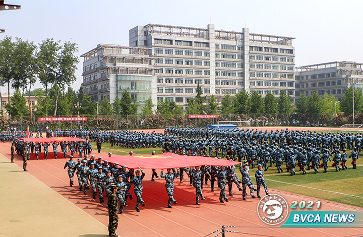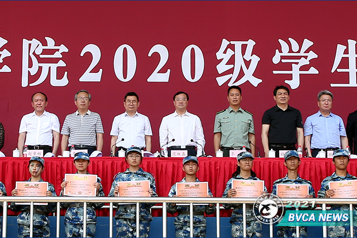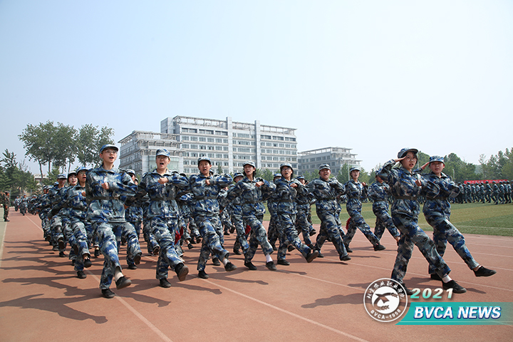 经过14天的艰苦训练, 2020级学生军训闭营仪式暨汇报表演于5月21日上午在南校区田径体育场隆重举行。学院党委副书记、院长范双喜,北京砺志国防教育培训学校副校长李斌,党委副书记冯学会,副院长程文华,纪委书记鲁雷,党委常委、组织部长徐世旺,党委常委、宣传部长赵章彬以及相关职能部门的领导,各系部党总支书记、校区主管学生工作的副书记、副院长,四校区全体学工人员,一同观看军训汇报表演。冯学会同志主持闭营仪式。