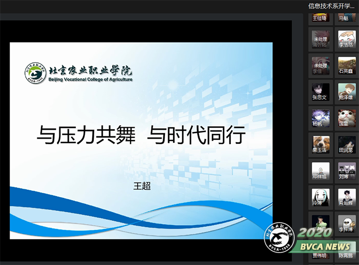 学生心理健康服务中心王超老师以“与压力共舞,与时代同行”为主题,从认识压力源、关注情绪以及如何正确调节情绪,缓解压力等三方面,结合疫情期间针对全院在校生进行的居家心理健康调查问卷的数据分析,详细阐述了面对突如其来的疫情或者工作和生活中遇到的其他应激事件,如何积极有效的帮助自己顺利度过,释放压力,提升幸福感。