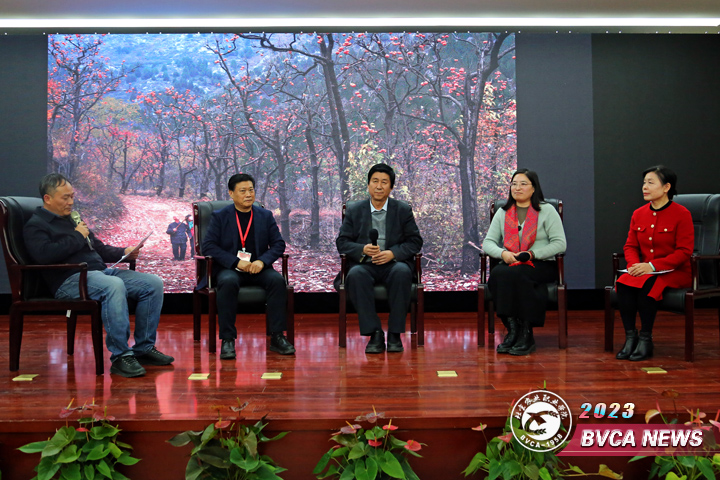 第三阶段,院领导王晓华主持案例分享。邀请了黄山店村旅游公司续莹丽总经理分享“以特色精品民宿为引擎,打造全域生态文化休闲旅游产业格局”的乡村振兴案例;邀请博士小院创建人,学校园艺园林学院朱启酒教授分享了“做给农民看、带着农民练、教会农民干、帮助农民赚”博士小院建设思路及发展理念。与会嘉宾河南农业职业学院党委书记刘源教授、湖南生物机电职业技术学院副院长傅爱斌教授进行现场点评。