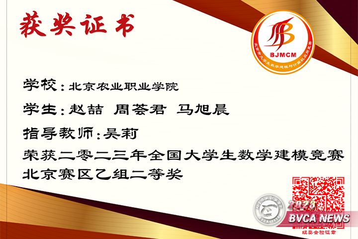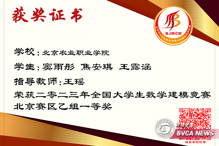 近日,2023年全国大学生数学建模(北京赛区乙组)竞赛成绩揭晓,我院教师王瑶指导的窦雨彤、焦安琪、王露涵团队荣获北京市一等奖,教师吴莉指导的赵喆、周荟君、马旭晨团队荣获北京市二等奖。