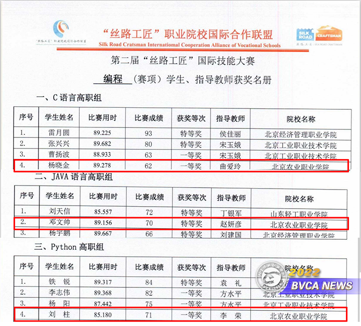 第二届“丝路工匠”国际技能大赛由北京市教育委员会、俄罗斯教育职业教育发展研究院、白俄罗斯教育部职业教育研究院、哈萨克斯坦教育部工业联盟和职业教育学会主办,设有“编程技术”在内9个赛项,大赛采用线上形式,国内国外学生同台竞技。