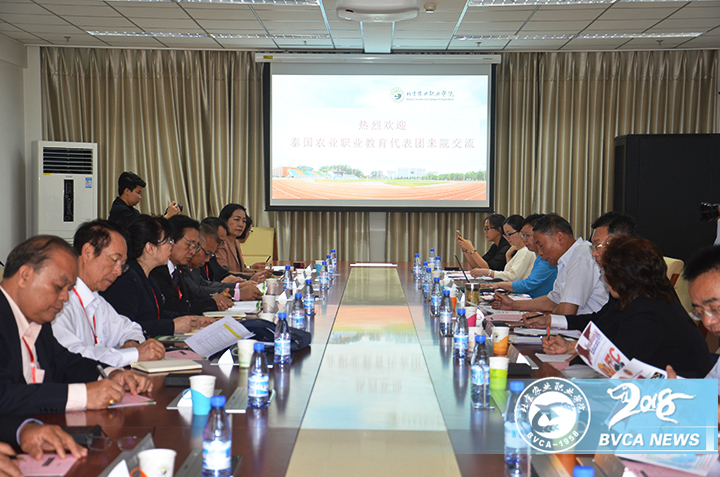 泰国职业教育委员会项目顾问瓦尼·挽西代表泰方致辞,对学院的农业栽培技术、实验室设施和教师的专业性表示充分赞赏,泰方愿意带着诚意学习中国发展迅速的高科技和领先的农业技术,希望能与中方职业院校开展实质性的合作,特别是在汉语、汉语文化和专业知识方面的合作。随后学院与泰国农业职业教育代表团沟通了教师培养、学生长短期交流学习等合作方向。