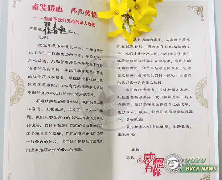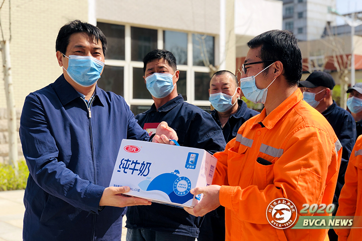 在全体人员热烈的掌声中,程文华和后勤领导班子成员一起为员工们送上了方便面、牛奶等慰问食品,同时为后勤员工的家人送上“感恩有你”的暖心慰问书信,向在背后默默付出的后勤家人们表示诚挚的谢意。