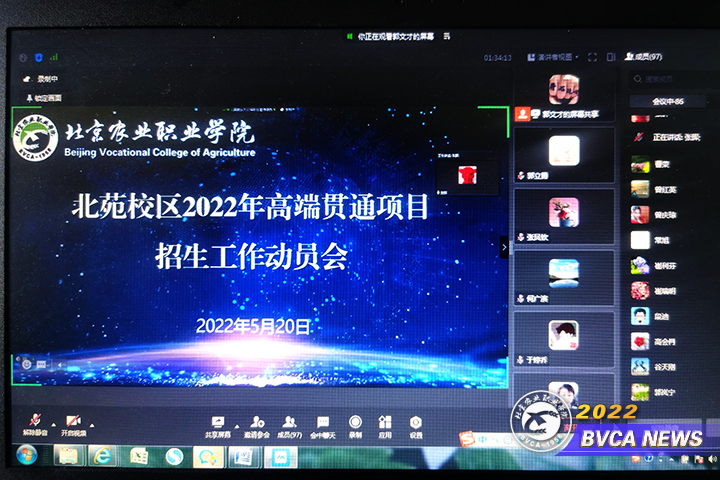 5月20日下午,北苑校区(国际教育学院)召开线上2022年高端贯通培养项目招生动员会。学院党委常委、副院长谷天刚出席。学院招就处相关同志、北苑校区负责同志和全体教职工共95人线上参会。会议由北苑校区党总支副书记、副院长(主持工作)张晖主持。