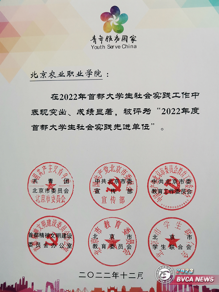 近日,团市委、市委教育工委、市委宣传部、首都精神文明办、市教委和市学联对在2022年“青年服务国家”首都大学生社会实践活动中表现突出的集体和个人进行表彰,我院获评2022年‘青年服务国家’首都大学生社会实践先进单位。