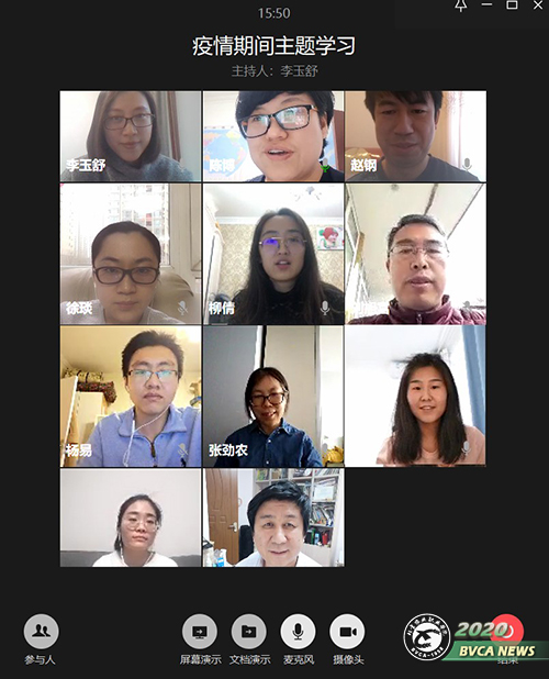 面对新冠肺炎疫情的严峻形势,为充分发挥基层教师党支部的战斗堡垒作用,发挥党员的模范带头作用,进一步落实学院防控工作,园林专业党支部于3月8日开展了以“大疫当前、党员先行”为主题的线上学习活动。学习活动由党支部书记李玉舒主持。