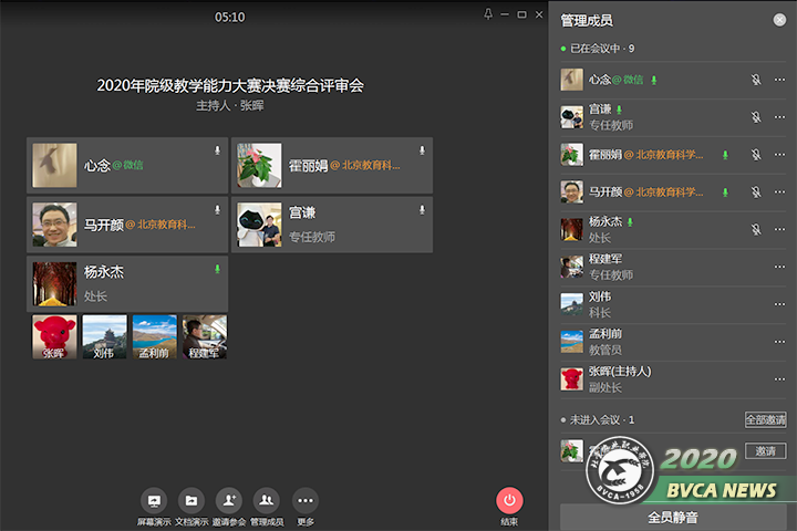 本次比赛由教务处组织筹备,各系部(校区)按照学院《关于举办2020年“神州祥升”杯(第三届)教学能力比赛的通知》要求,于2020年6月5日前完成了初赛,共选拔出15个团队共计56名教师(包括8名校企合作企业指导教师)进入决赛。鉴于新冠肺炎疫情防控特殊形势,决赛调整为非现场比赛形式进行,各参赛队按要求提交教学设计和课堂教学视频。北京市教育科学研究院马开颜、霍丽娟教授,北京市神州祥升软件有限公司教研部主管曹磊工程师,我院信息技术系宫谦和园艺系程建军教授五位专家担任大赛评委。
