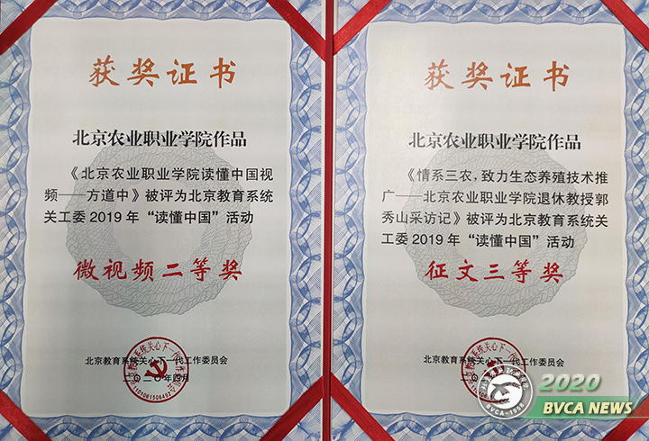 我院关工委报送的《一生追随党》被教育部关工委评为2019“读懂中国”最佳征文。报送的《一生追随党——beat365官方网站离休干部方道中采访手记》、《爱岗敬业三十载,培育桃李满天下——beat365官方网站园艺系赵晨霞教授采访手记》获得北京教育系统关工委2019年“读懂中国”征文一等奖;《情系三农,致力生态养殖技术推广——beat365官方网站退休教授郭秀山采访手记》获征文三等奖,《读懂中国视频——方道中》获微视频二等奖;院关工委分别获教育部关工委和北京教育系统关工委2019年“读懂中国”组织奖。