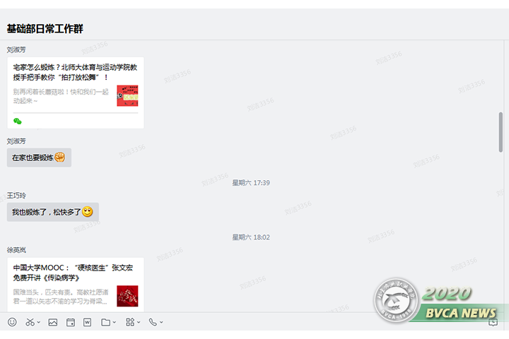 为了在特殊时期及时安排好防控工作,近期,基础部充分利用企微中的“会议助手”功能,多次组织召开党政联席专题会和防控工作领导小组工作会。虽然参会人员身在不同地方,但在疫情面前、在这场没有硝烟的战争面前,大家纷纷表示会在全面收集、及时准确上报疫情数据的同时,义无反顾的坚守工作职责,全力保障在春季学期延迟开学的教学工作中基础学科“停课不停学”的有序开展。