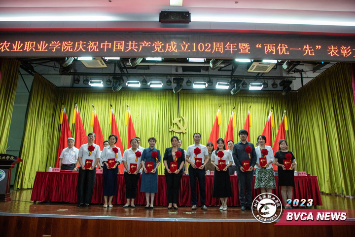 周志成同志在讲话中,首先代表学院党委,向受到表彰的先进党组织和优秀个人表示热烈祝贺,向学院1000多名共产党员致以节日的问候,向为党的事业和学院发展作出贡献的老党员老同志们致以崇高的敬意!他回顾了党102年筚路蓝缕、波澜壮阔的历史,党的二十大擘画的以中国式现代化推进中华民族伟大复兴的宏伟蓝图,以及学院近两年党建和事业发展取得的成绩。他强调,全院党员要深刻学习领会习近平总书记对党的建设和组织工作作出的“全面建设社会主义现代化国家,全面推进中华民族伟大复兴,关键在党,关键在人”最新重要指示精神,以评选表彰的“两优一先”为榜样,不断推进学院事业高质量发展。他指出,要深挖学院红色基因、农业基因、职教基因,从青年农场的诞生源头和志愿军捐资建设八一农机校的校史中不断挖掘,使学生爱农学农,教师爱岗敬业,党员干部更加深刻地领悟“两个确立”的决定性意义,更加自觉增强“四个意识”、坚定“四个自信”、做到“两个维护”。他要求,全院党员要对照校内巡察回头看中发现的问题,认真整改落实,自觉加强政治建设,全面提升党建工作水平,把从严治党不断向纵深推进,以党建为引领推动学院事业高质量发展。