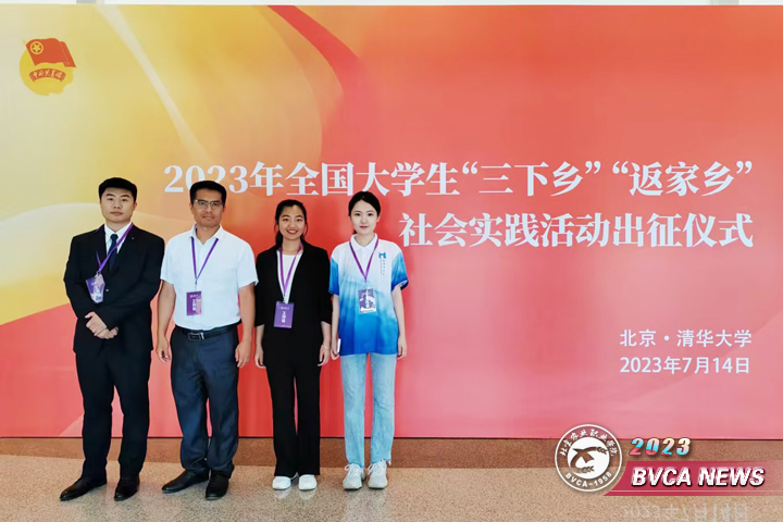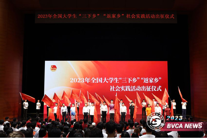 为深入学习贯彻习近平新时代中国特色社会主义思想,全面贯彻落实党的二十大精神,落实团十九大工作部署和《共青团中央全国学联关于增强新时代大学生社会实践活动实效深化共青团实践育人工作的意见》,组织引领青年大学生深入乡村基层一线,广泛动员青年学子踊跃投身社会实践活动,共青团中央于7月14日在清华大学新清华学堂启动2023年全国大学生“三下乡”“返家乡”社会实践活动,团中央书记处第一书记阿东等领导出席出征仪式并讲话。我院学生代表参加出征仪式并上台接受授旗,优秀实践团受邀在新时代大学生社会实践成果交流展环节进行展示。