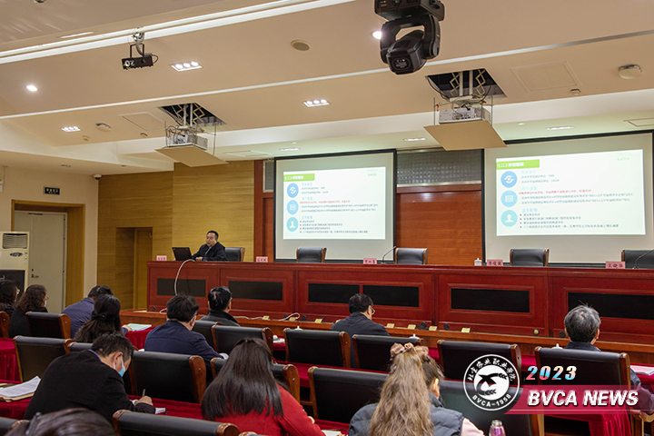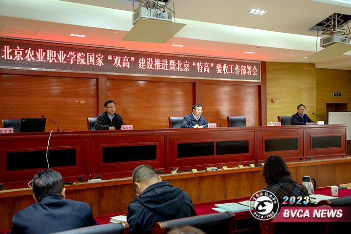 教务处处长、“双特高”建设与验收工作办公室主任杨永杰就“双高”中期绩效自评工作进行总结。2022年4月至6月,经过两个月的连续奋战,学院“双高”中期绩效自评成绩为“优”,但依然存在一些问题,需要在2023年的建设工作中进一步进行完善。杨永杰同志解读了学院“双特高”建设与验收工作方案,对下一步“双高”建设和“特高”验收工作进行部署。园艺技术专业群负责人李志强、动物医学专业群负责人赵庶吏以及首农西郊农场园艺工程师学院建设项目负责人吴晓云分别汇报了专业群及工程师学院建设情况和验收准备工作。
