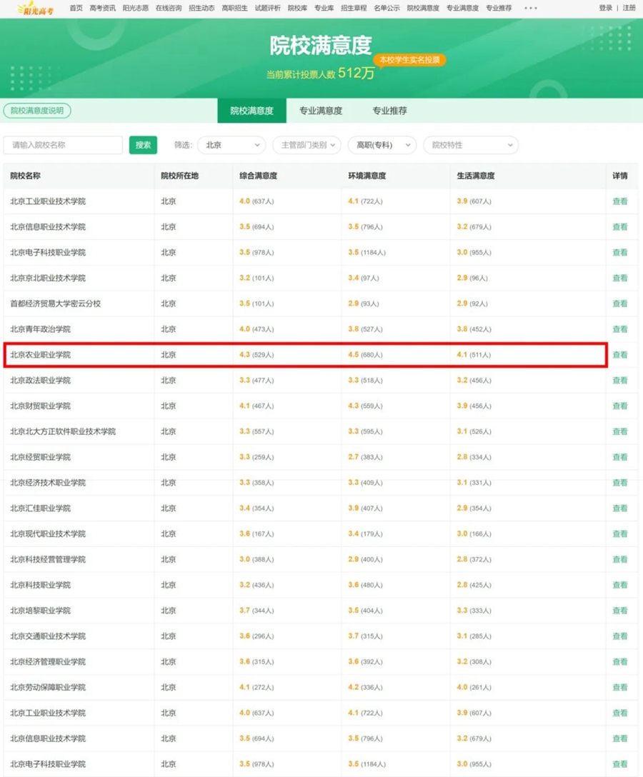 教育部“阳光高考”信息平台今年继续开展“院校满意度”评价,beat365在全市高职(专科)范围内综合满意度、环境满意度、生活满意度三项均为全市第一。