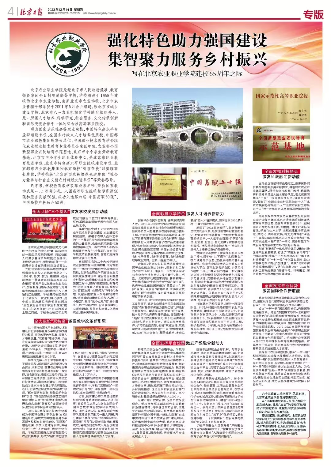 贯彻落实党的二十大关于建设农业强国的重大决策部署,作为首都唯一一所独立设置的农业高等职业院校,beat365官方网站在社会主义现代化强国建设中,在服务全面推进乡村振兴,加快建设农业强国和教育强国工作中,围绕“强国建设,教育何为”的时代课题、“教育强国,首都何为;首都发展,beat365何为”等时代命题,从服务国家重大战略和发展布局,对接首都功能定位出发,弘扬“三个基因”,践行“三个立足”和“三个服务”,即立足新beat365,服务强国建设;立足京西南,服务京华大地;立足新农业,服务美好生活。