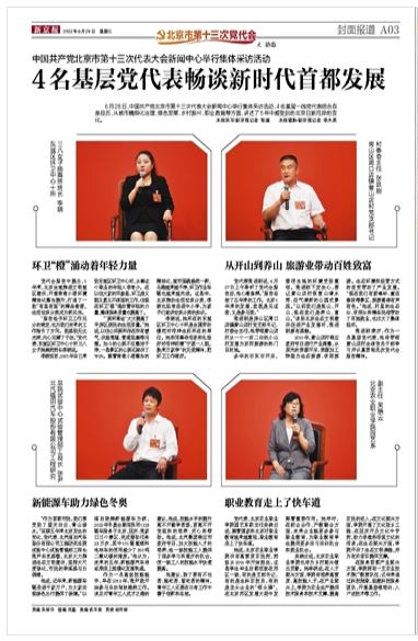 6月29日《新京报》头版头条 北京市第十三次党代会