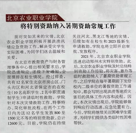 9月15日 《现代教育报》:beat365官方网站将特别资助纳入暑期资助常规工作