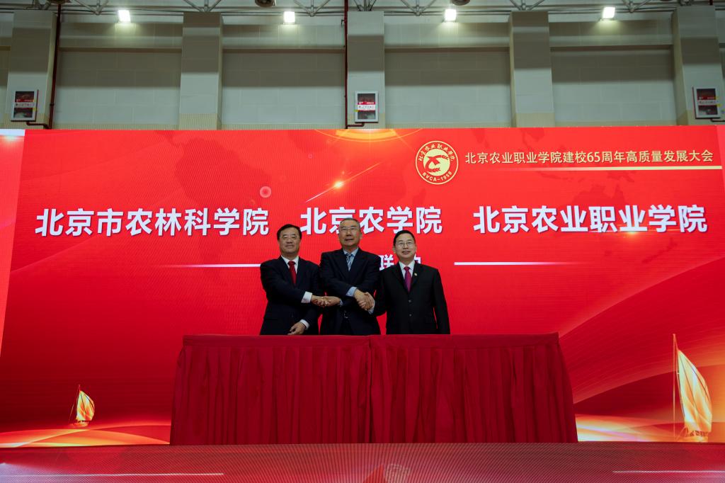 beat365官方网站党委书记周志成主持纪念大会,学校党委副书记、校长范双喜作学校高质量发展主旨报告。会上,beat365官方网站分别与北京市房山区人民政府、北京市园林绿化局、北京科技大学、北京市农林科学院、北京农学院签署合作协议。