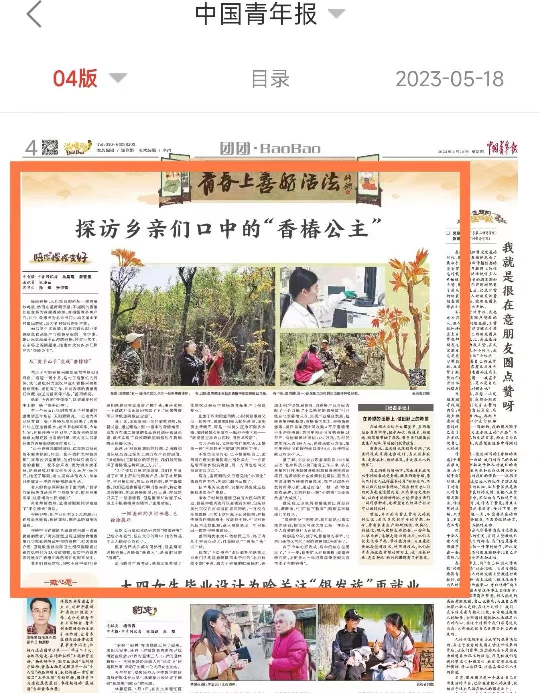 提起香椿,人们想到的多是一碟香椿炒鸡蛋。然而在孟雨晴手里,不起眼的香椿却能变身为冷藏香椿芽、香椿酱等多种产品。如今,香椿成为北京市门头沟区苇水子村富民增收、助力乡村振兴的新产业。