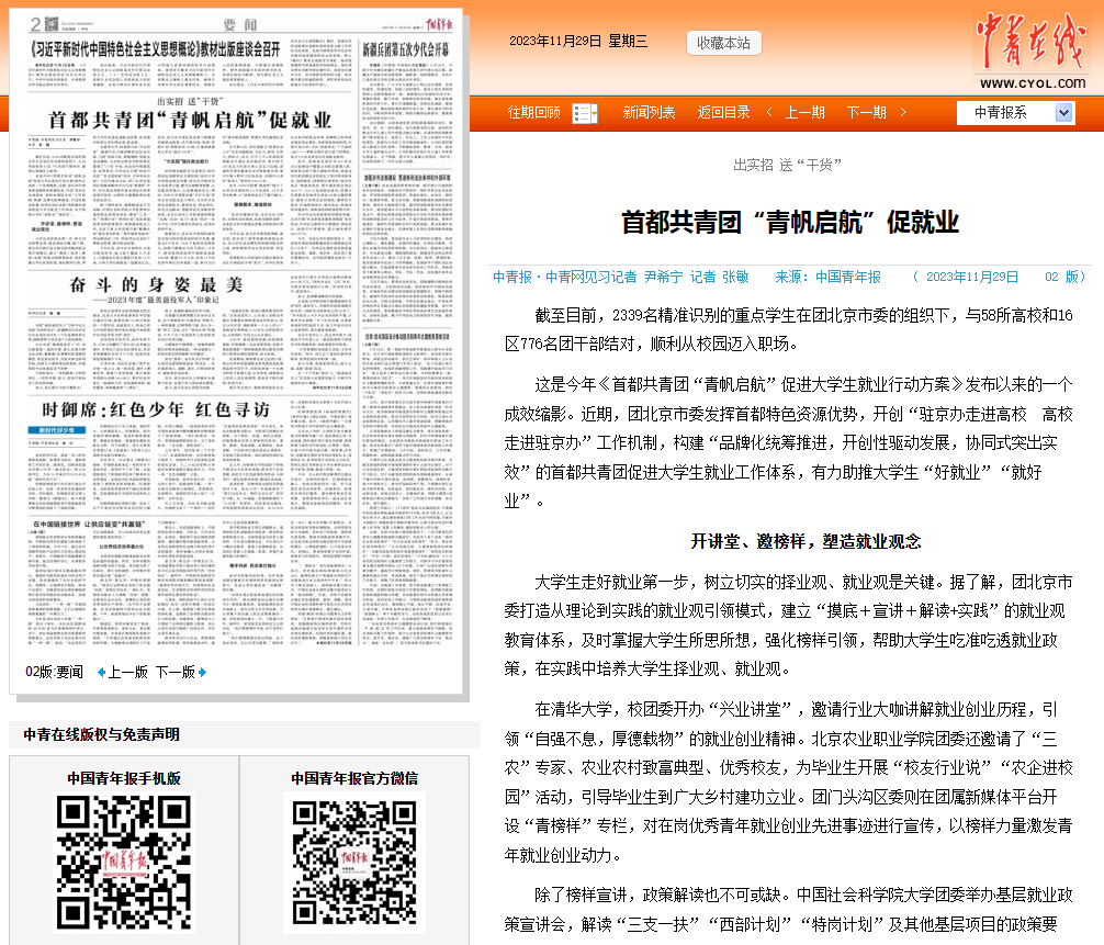 截至目前,2339名精准识别的重点学生在团北京市委的组织下,与58所高校和16区776名团干部结对,顺利从校园迈入职场。