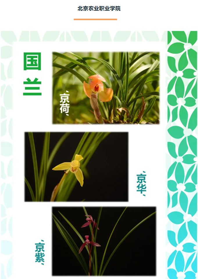 自2015年承办第四届中国兰花大会以来,学校聚焦国兰产业发展关键难题,自主选育引领国兰市场方向的新品种3个,先后在2019年中国北京世界园艺博览会、第十届中国花卉博览会、国家植物园第二届兰花展中斩获佳绩,获得行业企业和业内专家的高度赞誉。