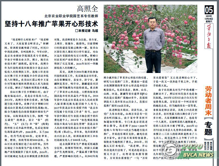 高照全副教授多年来一直致力于三农技术服务,自2004年开始参加科技特派员工作,先后被北京市科委,山东省聊城市、泰安市、济宁市,新疆阿克苏市、喀什市,新疆生产建设兵团农三师等地聘为科技特派员。重点推广了苹果开心形改造、大樱桃郁闭果园改造和有机果品生产等技术。近年来作为北京市科委科技特派员积极投身于北京山区农业发展和低收入村的帮扶工作,连续六年在房山区佛子庄乡开展院乡合作工作,并在房山区佛子庄乡贾峪口村、霞云岭乡王家台村和银水村等低收入村持续开展帮扶,取得突出成绩。在佛子庄乡贾峪口村建成山区景观式白海棠特色基地1处,为山区农业发展打造了成功样板。在房山区霞云岭乡王家台村和银水村等地开展核桃黑的无人机飞防技术示范,解决了当地核桃黑防控难题。日前先后受到《科技日报》、《劳动午报》、人民网、科学网、学习强国、中国好人网等十多家媒体广泛报道。高照全副教授秉持初心,下沉农村推广实用技术,为我院三农服务工作做出表率,成为农技推广领域的急先锋。