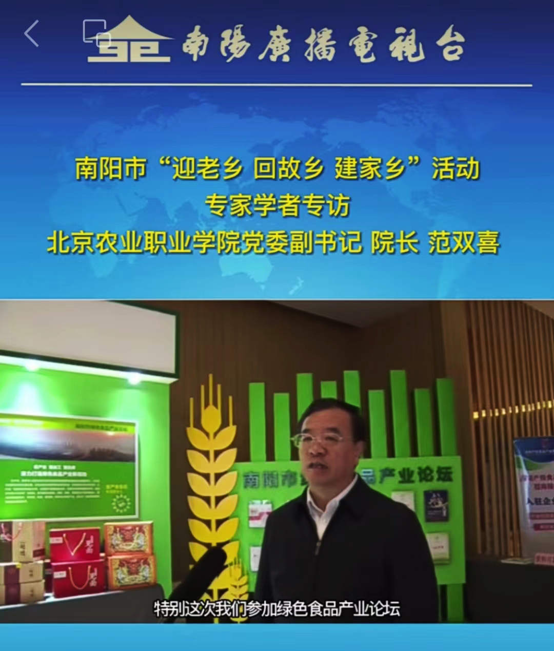 4月2日 南阳广播电视台视频号:范双喜院长参加南阳市“迎老乡 回故乡 建家乡”活动专家学者专访