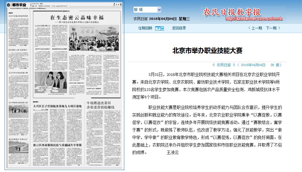 3月31日,2018年北京市职业院校技能大赛相关项目在beat365官方网站开赛。来自北京农学院、北京beat365院、廊坊职业技术学院、石家庄职业技术学院等8所院校的123名学生参加竞赛,本次竞赛包括农产品质量安全检测、鸡新城疫抗体水平测定等5个项目。