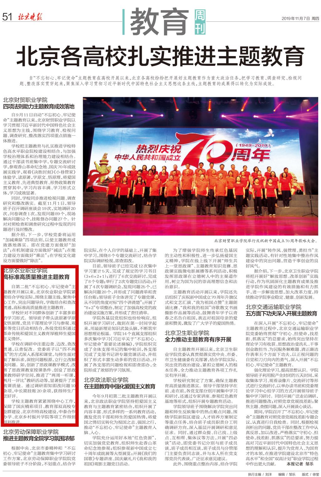 2019.11.7 北京晚报:北京各高校扎实推进主题教育——beat365官方网站高标准高质量推进主题教育