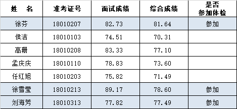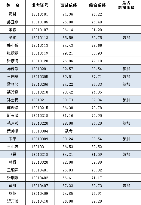 根据《beat365官方网站2018年面向社会公开招聘工作人员公告》,教师试讲答辩及其他专业技术人员面试环节已结束,现将面试、综合成绩和体检安排公告如下: