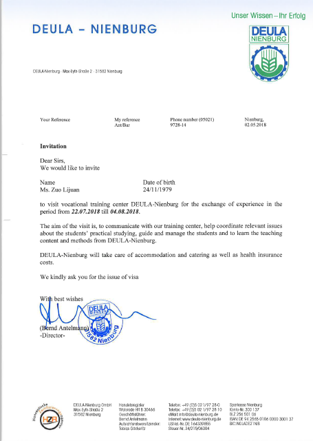 邀请单位介绍:德国宁堡农业学院,位于下撒克森州宁堡市,由下撒克森州农业行会和宁堡市地方农业行会按股份共同出资。是一所公立教育培训机构,专注于为农民和农业人士提供实践与理论培训。该校积极参与各种国际农业项目并接收海外留学生在德国进行农业实习。