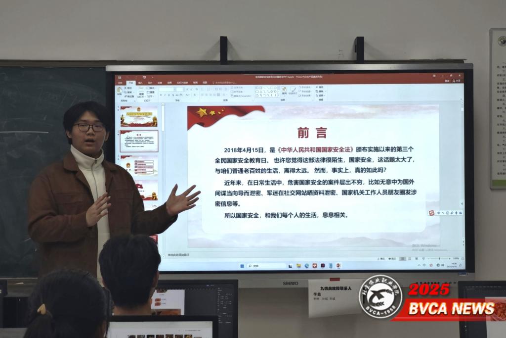 全院28个班级紧扣总体国家安全观开展主题班会。通过PPT展示、案例解析、小组讨论等形式,深入学习《中华人民共和国国家安全法》和《中华人民共和国反间谍法》等法规,学生从“传统安全”到“生物安全”多维度领会国家安全内涵。