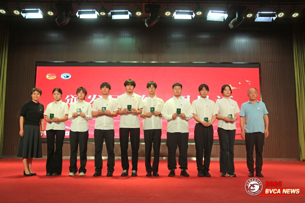 团委副书记栗广社宣读2025年新团员名单,校关工委副主任兼秘书长赵章彬和学生工作部部长纪冰岛为新团员佩戴团徽、颁发团员证。在赵俊冬老师的领誓下,全体新团员面向团旗庄严宣誓,铿锵誓言响彻会场。新、老团员代表先后发表感言。