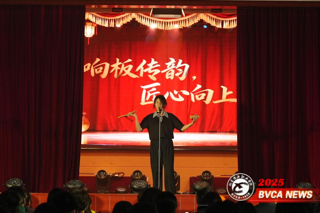 快板表演《响板传韵,匠心向上》以其独特的节奏与韵律,展现了传统曲艺的魅力,赢得满堂喝彩。