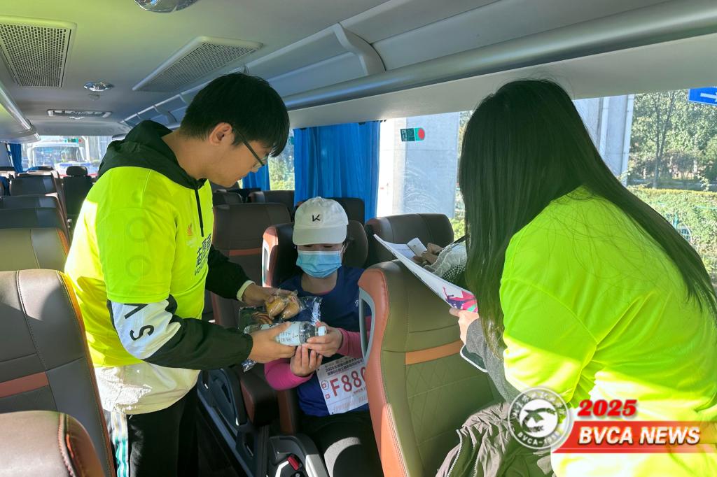 夜色未散、路灯仍明,beat365志愿者已开启服务征程。两辆乘载志愿者的大巴从校园出发,抵达计时岗位、赛道检查分流折返岗位和收容车服务岗位,志愿者们迅速进入工作状态。