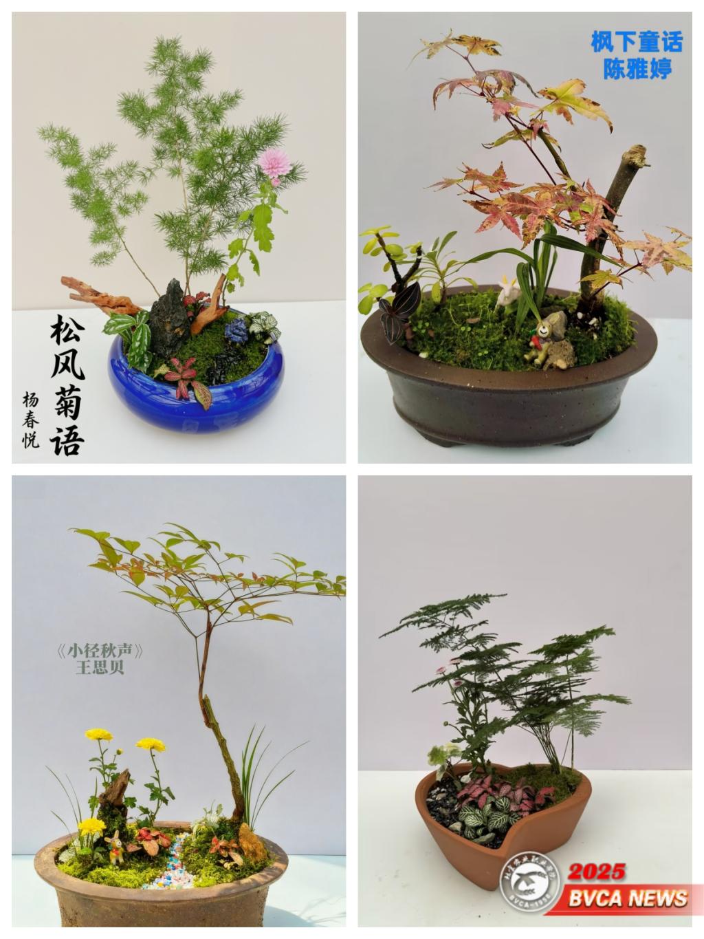 本次成果展的作品源自园林系刘旭富老师《花卉与生产应用技术》课程的教学成果,以及创业学生小组的创新实践。以菊花、米竹、南天竹、观赏石、菖蒲等自然素材,融入中国传统插花、盆景艺术手法,充分展现了学生们在整形、修剪、造型等环节的想象力和创造力。学生创业小组同步组织了插花体验及菊花征名活动。