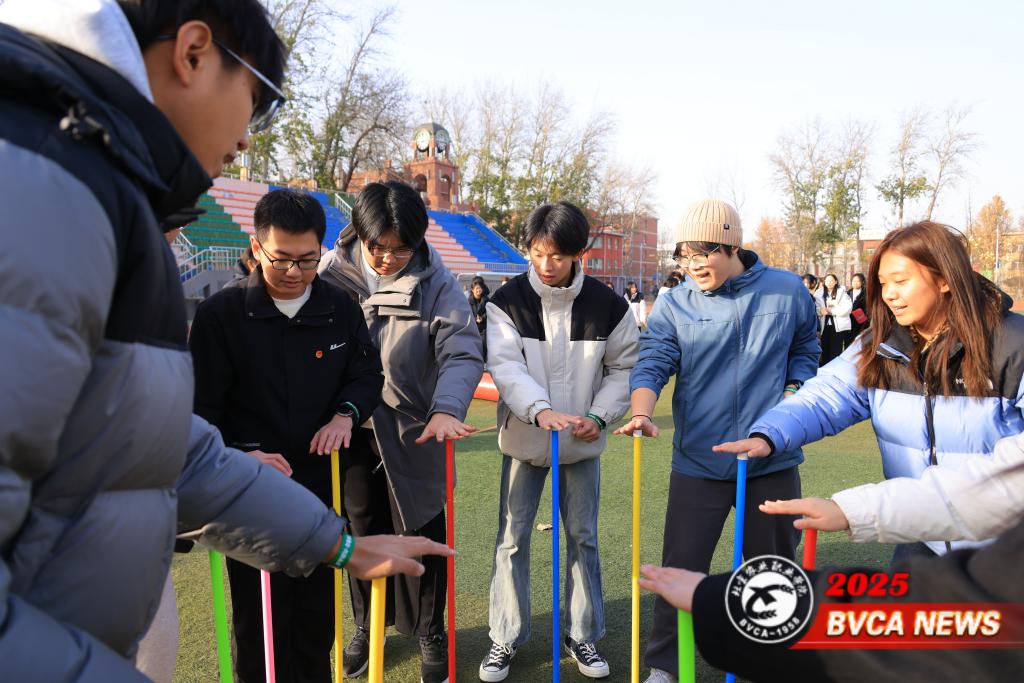校团委副书记栗广社致辞,鼓励团学干部在活动中锤炼本领、凝聚共识、共同成长。破冰游戏“抢椅子”迅速点燃现场氛围。核心环节“协调攻坚·团队作战”中,“袋鼠跳跳向前冲”“疯狂毛毛虫”“巨人脚步”“不倒森林”四项任务依次展开,全方位考验团队综合能力。各队群策群力、分工协作,在各项任务中充分展现出团结协作、奋勇争先的良好风貌。
