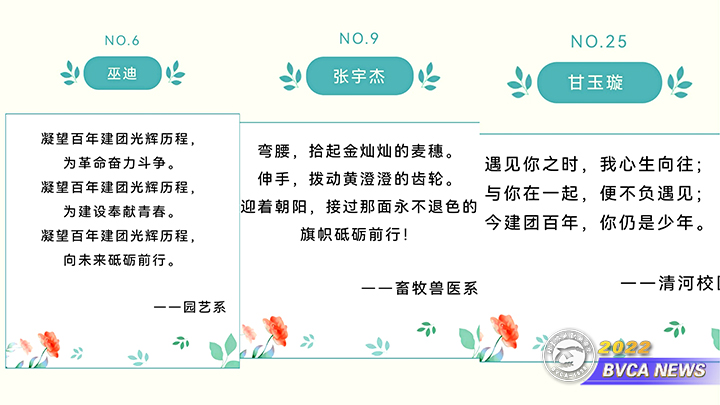 “三行情书”,一行写梦想、一行注热血、一行颂青春。文字虽短,情谊却浓,字里行间流露的尽是beat365学子对共青团真挚的情感,更是对建团百年光辉历史的歌颂。团委通过此次活动,进一步引导广大团员青年坚定信心高举团旗跟党走,争做勇于担当的时代新人,共同延续中国共青团的无上荣光。