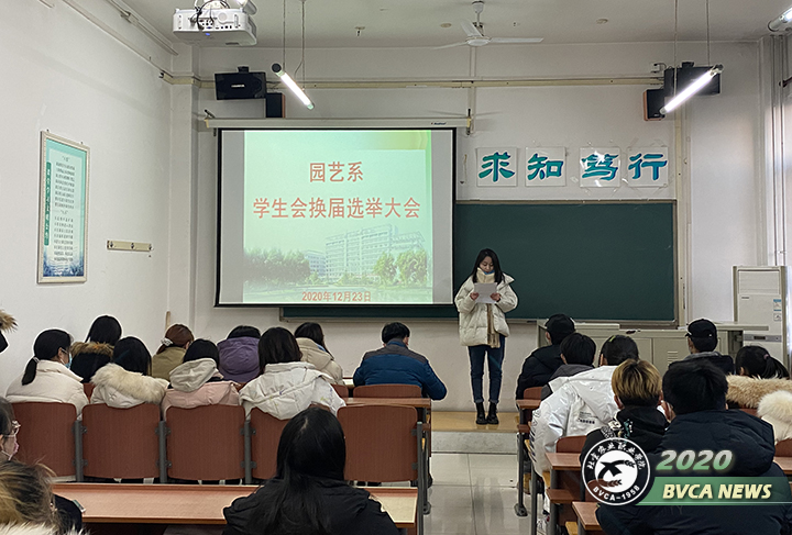 会上,竞选人依次发表竞选演讲,经评审团评议,选出新一届学生会干部人选,园艺1912班张博达同学当选新一届园艺系学生会主席。