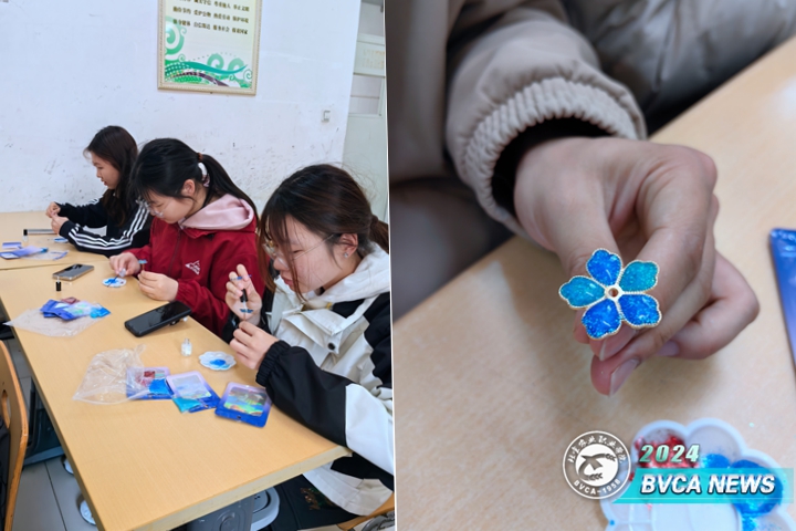 活动中,李婷老师介绍了传统工艺作品——掐丝珐琅发簪的历史文化,帮助同学们了解掐丝珐琅的由来。李昊争老师介绍了涂绘发簪的方法,并鼓励学生发挥想象力创作自己的作品。随后,学生们亲自动手涂绘发簪,老师们与学生亲切交流,指导大家涂绘手法。在其乐融融的氛围中,学生们纷纷完成了自己的作品。