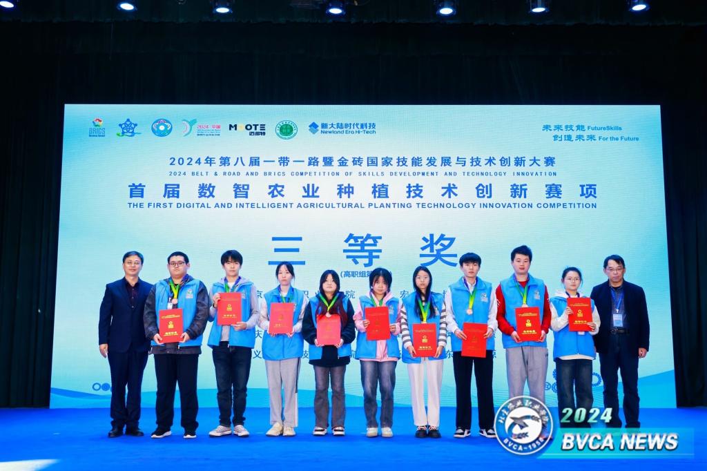数智农业种植技术创新赛项中指导教师刘雁征、徐贺腾带领姜博、赵宏、周悦团队荣获高职组三等奖;指导教师陈科、宋一明带领徐楷轶、杨皓程、姜皓宇团队荣获中职组三等奖。