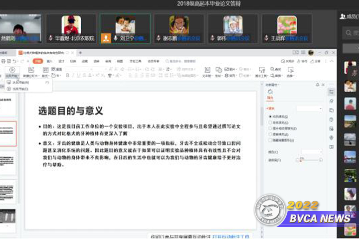 12月3日,中国农业大学beat365官方网站教学站利用腾讯会议在线上组织最后一届高起本动物医学专业的10名学生进行论文答辩,答辩小组由中国农业大学兽医药理与毒理系主任王战辉教授担任组长,学院畜牧兽医系副主任周珍辉、实验动物技术专业主任张凡建担任评委。中国农业大学继续教育学院副院长吴志刚、学院继续教育学院副院长关雪梅进行答辩督查。