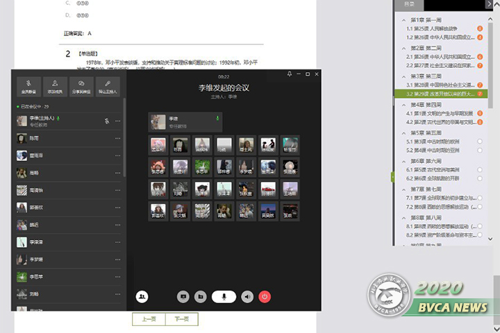 2020年春季开学以来,为了落实学院“停课不停教、停课不停学”的工作部署,在北苑校区(国际教育学院)领导的大力支持下,按照文科教学部要求线上教学必须要做到易学习、有重点、保质量,历史教学依托“一平三端”平台,将现代化科技手段融入到历史这一传统学科中,通过多渠道、多手段,保障了线上历史教学的实时顺利进行。