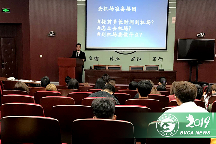 第一场精彩讲座由2019年全国金牌导游获得者曹震老师讲授。他与同学们分享了金牌导游成长的轨迹,不断学习和突破自己的经历,也分享了其参加导游大赛的过程和收获。