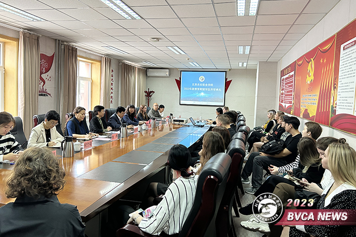 10月18日下午,学院2023年秋季学期留学生开学典礼在北苑校区会议室隆重举行。北京威酷教育联盟总经理王贺,学院国际交流与合作处处长梁秀文,国际教育学院副院长(主持工作)、副书记张晖,国际教育学院副书记李英军参加。会议由教务科科长玄有福主持。
