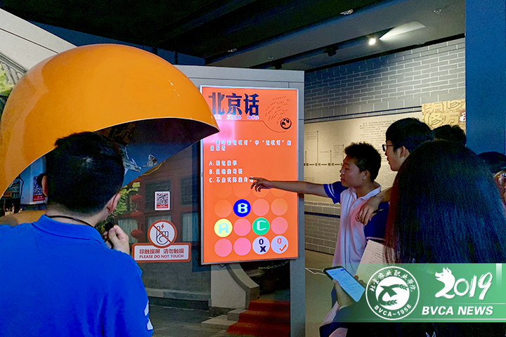 北京方志馆通过照片图片、实物摆件、文献材料及视频资料等方式展现了北京的发展历程及取得的成就,从自然、城市、建置、人口、经济、文化和方志编修七个方面了解北京,使学生们能更好的了解北京,热爱北京。学生们在讲解员的带领下参观了北京地情展和北京胡同展,展馆内有31个多媒体互动点位,北京地情沙盘模型、骑自行车游实景胡同、能够测试老北京话的电话亭,还有一座装扮成为北京四合院的点播厅等互动设施使得同学们纷纷体验,流连忘返。