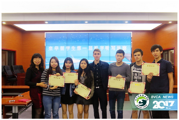 活动旨在正确引导留学生感受汉字之美,培养他们认真规范书写汉字的良好习惯。比赛分初级、中级组进行,以《发展汉语初级》、《发展汉语中级》教材中涉及的相关词汇、生活中的常用词汇,以及有代表性的汉语基础字词作为比赛素材。为体现趣味性,每轮比赛包括根据图片写汉字和听写汉字两个环节。赛前,学生抽签决定A队、B队,采取各队各推选1名选手对决,写错的选手被淘汰,写对者继续下一轮对决的形式进行,增加比赛的竞技性和公平性。比赛在紧张、热烈的气氛中进行,经过一个半小时的激烈角逐,站到最后的选手所在队成为胜出队,在胜出队中分别评选出一等奖1名、二等奖2名、三等奖3名。