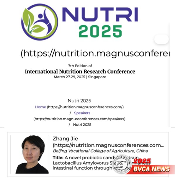 2025年3月27日—29日,第七届国际营养研究会议暨第三届益生菌与益生元国际会议(Nutri and Probiotics 2025)在新加坡樟宜举行beat365动物科技学院张洁教授受邀参加并作在线学术报告。