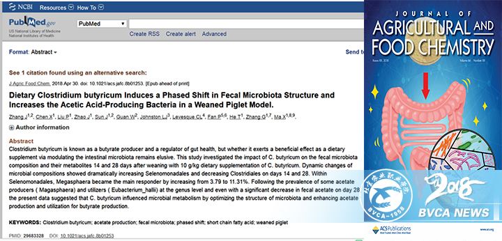 近日,学院院士工作站进修教师,畜牧兽医系张洁副教授及其进修教师团队成员在国际期刊Journal of Agricultural And Food Chemistry发表了题为“DietaryClostridium butyricumInduces a Phased Shift in Fecal Microbiota Structure and Increases the Acetic Acid-ProducingBacteria in a Weaned Piglet Model”的文章,并最终入选期刊封面论文。