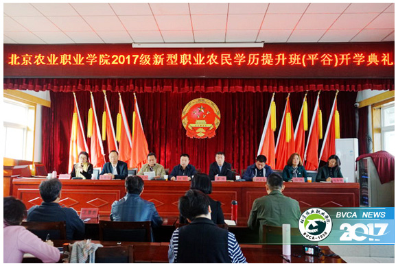 10月24日,现代服务管理系新型职业农民学历提升工程2017级休闲农庄平谷班开班仪式在平谷区东高村镇举行。平谷区教委副主任徐皝、东高村镇副镇长赵志友、平谷区农业电视广播学校校长刘春海,学院党委委员、市农业电视广播学校校长崔坤,教务处处长杨永杰、副处长张红等出席开班仪式,系主任何艳琳主持开班仪式。